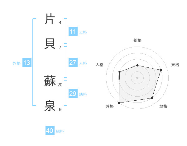 片貝 蘇泉さんの総格は40画の2点!