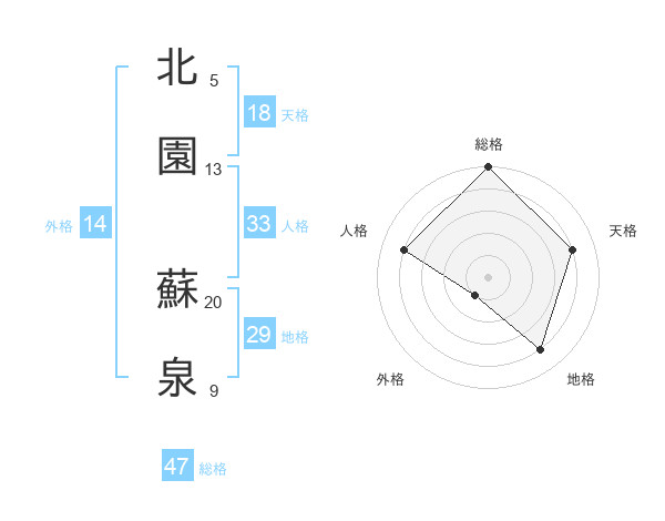北園 蘇泉さんを姓名の画数から五運を鑑定