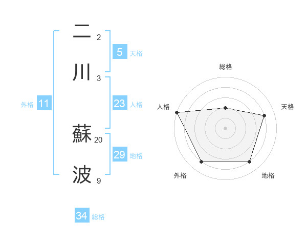 二川 蘇波さんの総格は34画の2点!