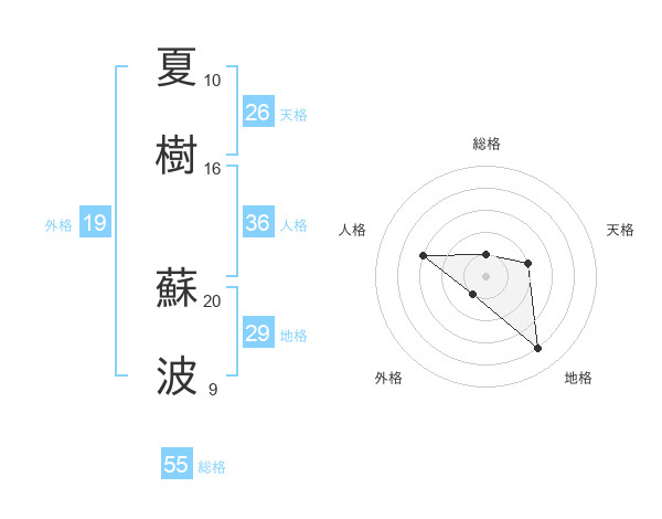 夏樹 蘇波さんの総格は55画の1点!