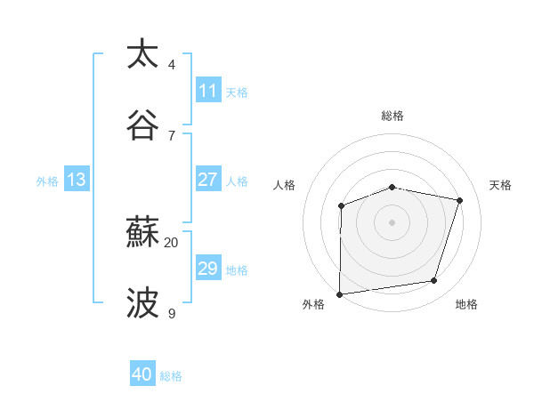 太谷 蘇波さんを姓名の画数から五運を鑑定