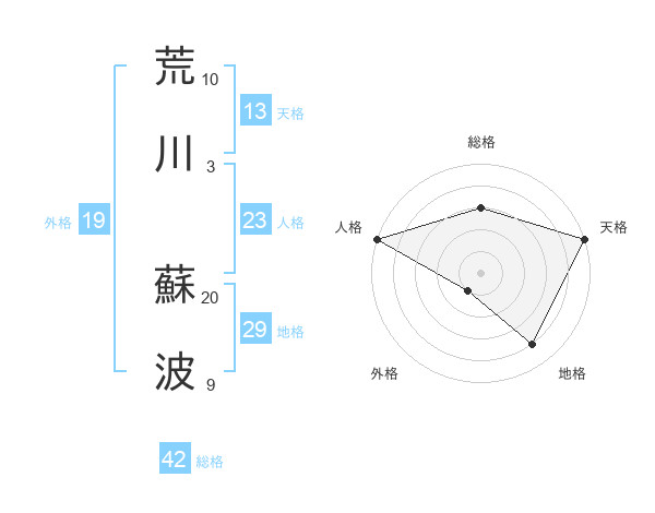 荒川 蘇波さんを姓名の画数から五運を鑑定