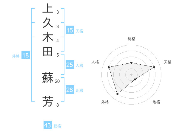 上久木田 蘇芳さんを姓名の画数から五運を鑑定