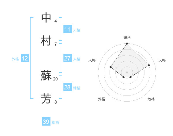 中村 蘇芳さんの総格は39画の5点!