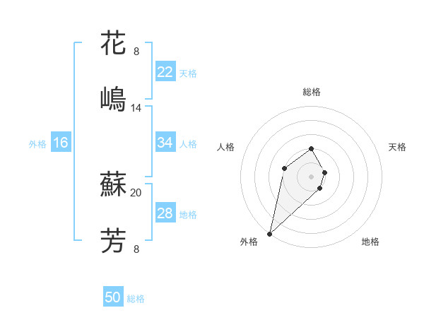 花嶋 蘇芳さんを姓名の画数から五運を鑑定