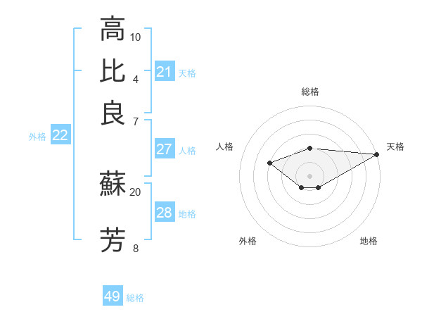 高比良 蘇芳さんの天格は21画の5点!