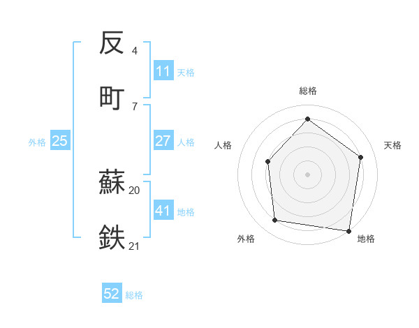 反町 蘇鉄さんの総格は52画の4点!