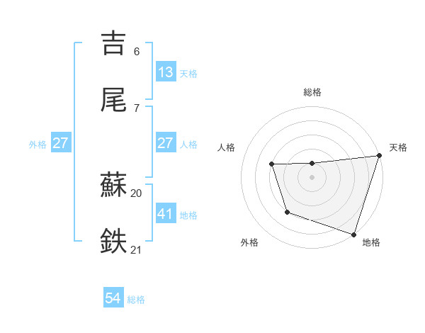 吉尾 蘇鉄さんの総格は54画の1点!