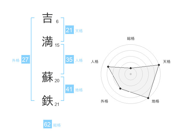 吉満 蘇鉄さんの総格は62画の1点!