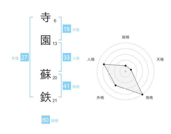 寺園 蘇鉄さんを姓名の画数から五運を鑑定