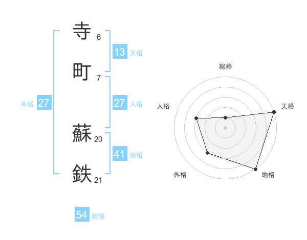 寺町 蘇鉄さんの総格は54画の1点!