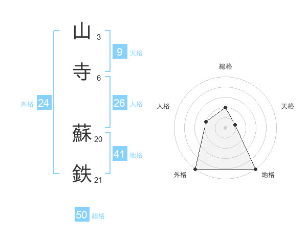 山寺 蘇鉄さんを姓名の画数から五運を鑑定