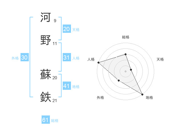 河野 蘇鉄さんを姓名の画数から五運を鑑定