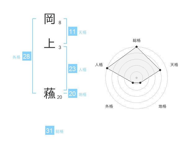 岡上 蘓さんを姓名の画数から五運を鑑定