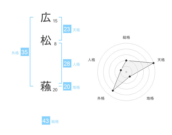 広松 蘓さんの総格は43画の2点!