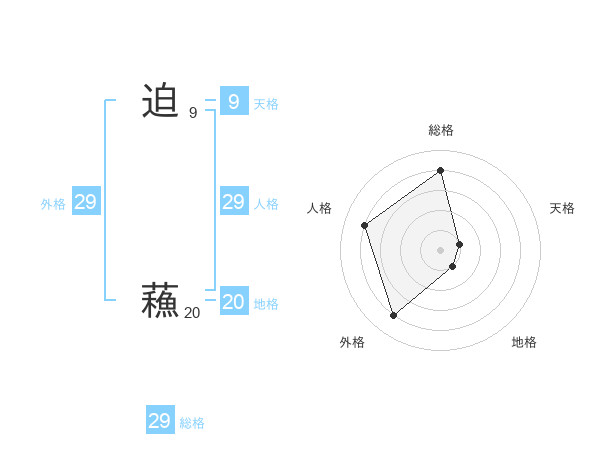 迫 蘓さんの外格は29画の4点!