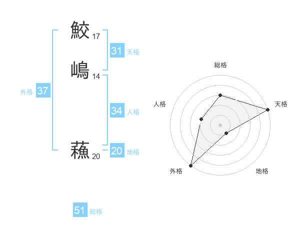 鮫嶋 蘓さんを姓名の画数から五運を鑑定