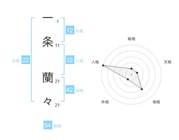 一条 蘭々さんの外格は22画の1点!