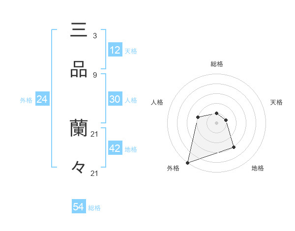 三品 蘭々さんを姓名の画数から五運を鑑定