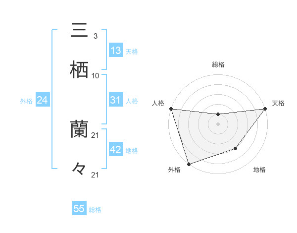 三栖 蘭々さんの天格は13画の5点!