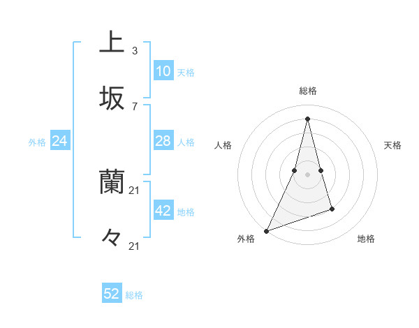 上坂 蘭々さんを姓名の画数から五運を鑑定