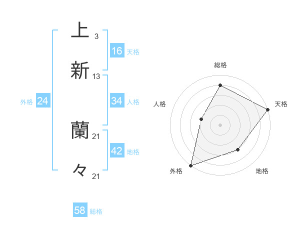 上新 蘭々さんを姓名の画数から五運を鑑定