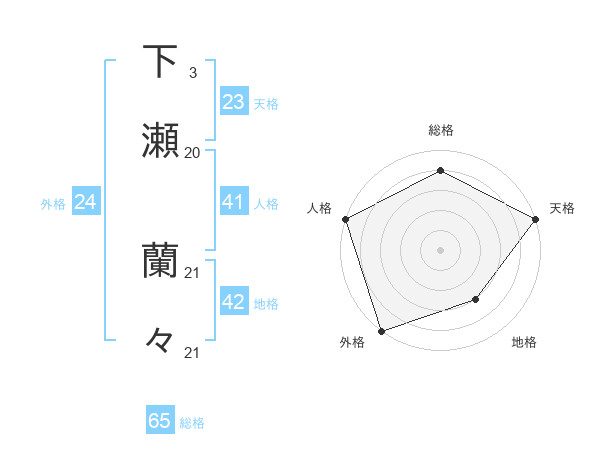 下瀬 蘭々さんを姓名の画数から五運を鑑定