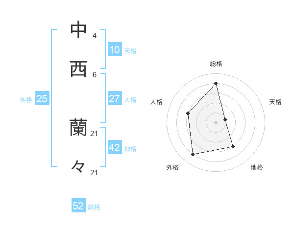 中西 蘭々さんの総格は52画の4点!