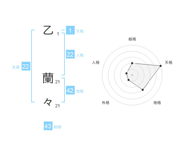 乙 蘭々さんの天格は1画の5点!