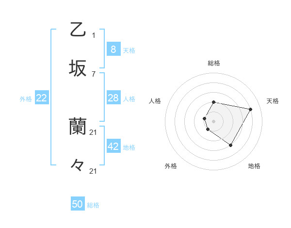 乙坂 蘭々さんの天格は8画の4点!