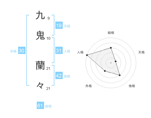 九鬼 蘭々さんを姓名の画数から五運を鑑定