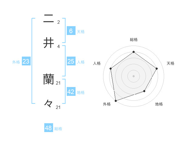 二井 蘭々さんを姓名の画数から五運を鑑定