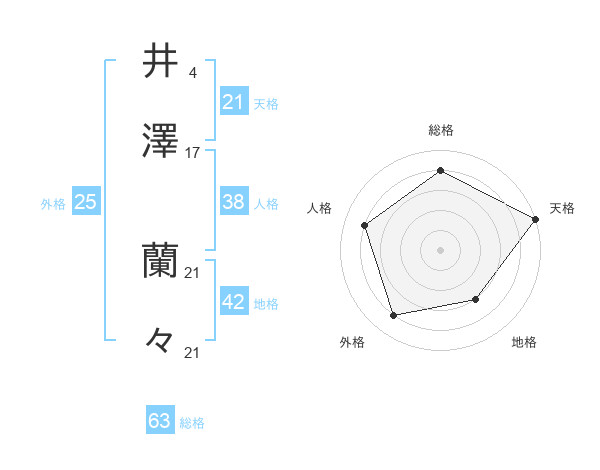 井澤 蘭々さんの天格は21画の5点!