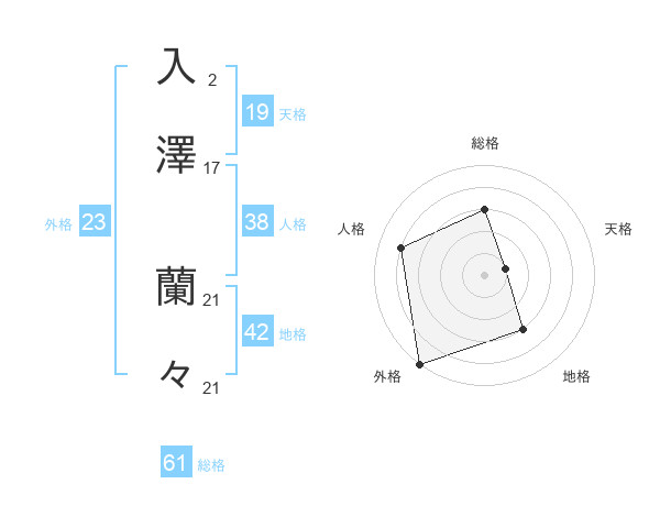 入澤 蘭々さんの総格は61画の3点!