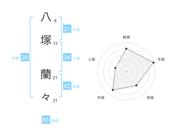 八塚 蘭々さんの天格は21画の5点!