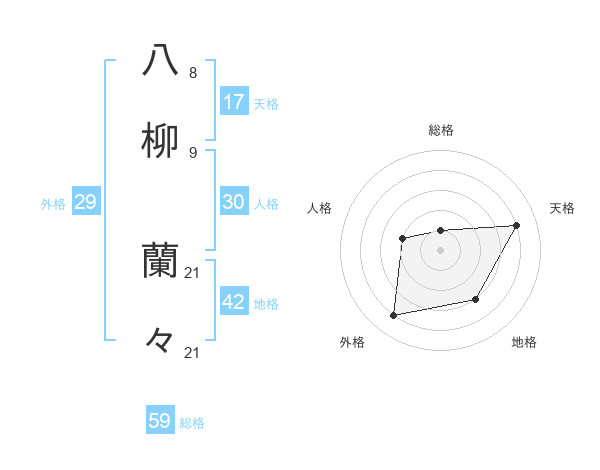 八柳 蘭々さんの総格は59画の1点!