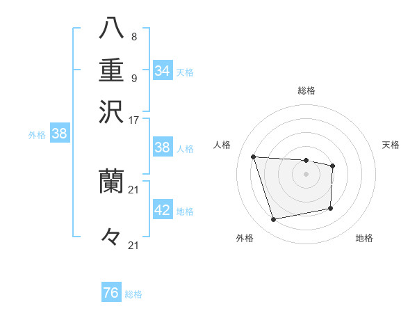 八重沢 蘭々さんの人格は38画の4点!