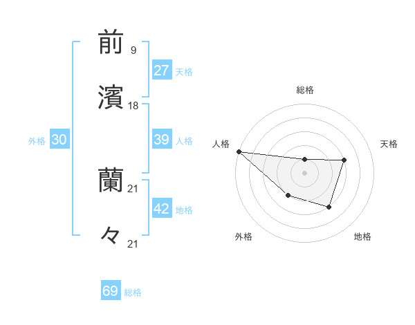 前濱 蘭々さんの総格は69画の1点!