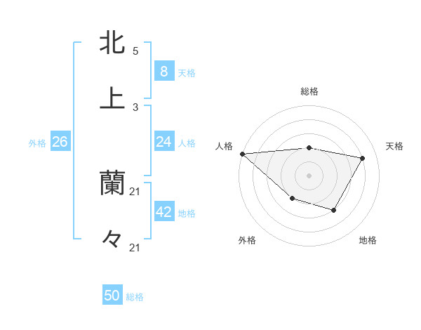 北上 蘭々さんの総格は50画の2点!