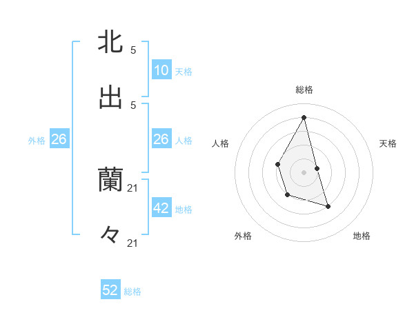 北出 蘭々さんを姓名の画数から五運を鑑定