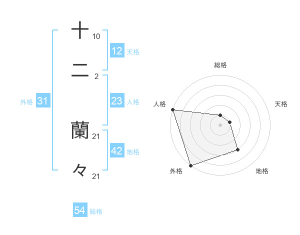 十二 蘭々さんを姓名の画数から五運を鑑定