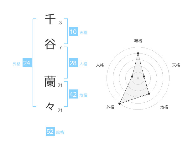 千谷 蘭々さんを姓名の画数から五運を鑑定