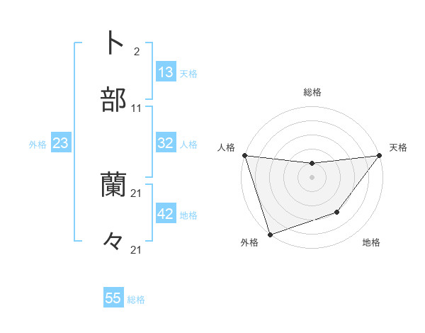 卜部 蘭々さんの外格は23画の5点!