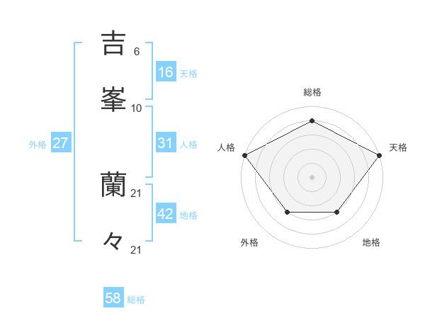 吉峯 蘭々さんの総格は58画の4点!