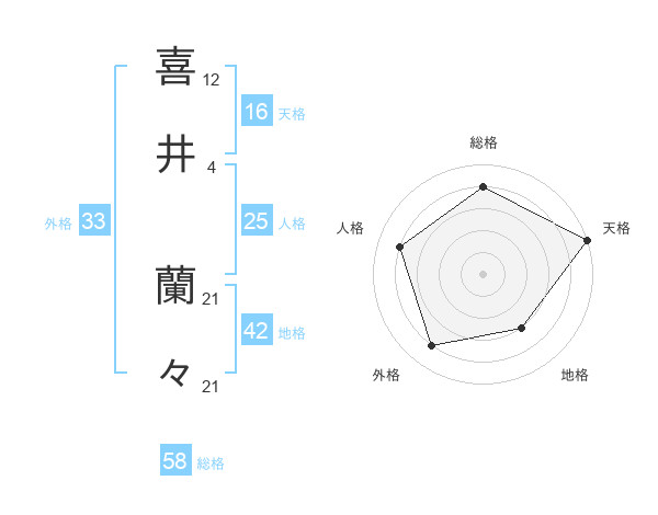 喜井 蘭々さんの総格は58画の4点!