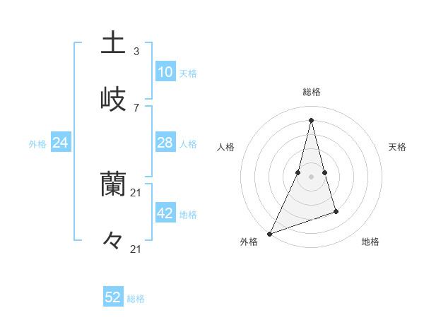 土岐 蘭々さんの総格は52画の4点!