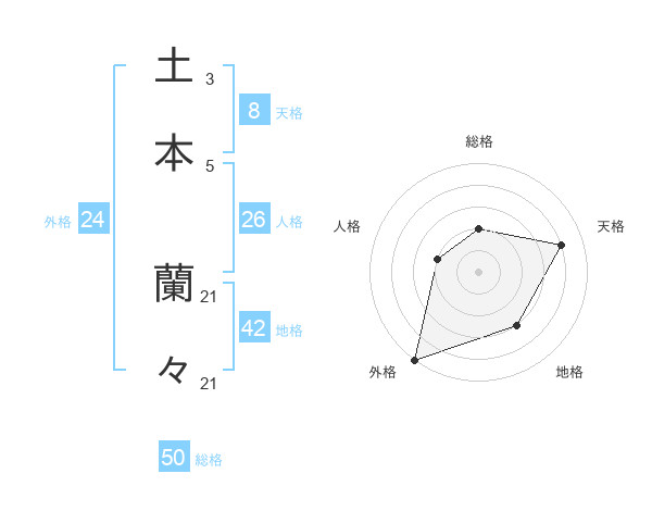 土本 蘭々さんの総格は50画の2点!