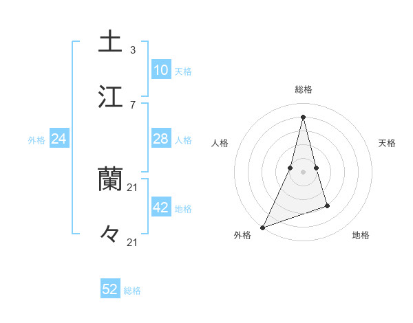土江 蘭々さんを姓名の画数から五運を鑑定