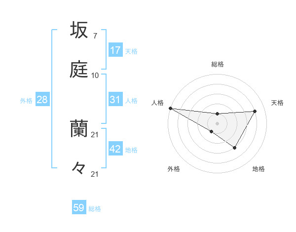坂庭 蘭々さんの総格は59画の1点!