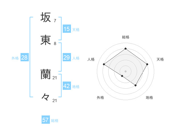 坂東 蘭々さんの総格は57画の4点!